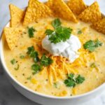 This Creamy Green Enchilada Chicken Soup is a flavorful, comforting dish combining tender diced chicken, white beans, cream cheese, corn, and green chilies in a rich enchilada sauce broth. Topped with cheddar cheese, sour cream, avocado, and fresh cilantro, it offers a delicious, creamy twist on classic enchilada flavors, perfect for a cozy meal.