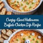 This Creepy-Good Halloween Buffalo Chicken Dip is a festive and flavorful party favorite combining shredded chicken with a spicy buffalo sauce and creamy cheese blend. Baked until bubbly and golden, it’s creatively decorated with ghost shapes and a spooky spiderweb for a fun Halloween touch, perfect for serving with chips and veggie sticks at any gathering.