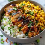 Now comes the fun part—assembling your bowl! Start with a generous scoop of fluffy rice, add a layer of the sliced, juicy chicken, then top with the creamy street corn mixture. Garnish with fresh avocado slices or dices, more chopped cilantro, and a wedge of lime. For those who love an extra burst of flavor, a drizzle of hot sauce or a sprinkle of additional Cotija cheese or chili powder is a perfect finishing touch. Serve immediately to enjoy all the contrasting textures and flavors at their best.