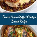 This French Onion Stuffed Chicken recipe features tender boneless chicken breasts filled with a savory blend of caramelized onions, Gruyère, and Parmesan cheeses. The chicken is pan-seared to a golden brown before finishing in the oven for a juicy and flavorful meal that brings the beloved flavors of French onion soup into an elegant stuffed chicken dish.