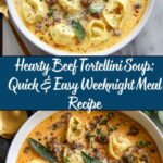 This Hearty Beef Tortellini Soup: Quick & Easy Weeknight Meal Recipe is a delicious, satisfying, and surprisingly simple dish that you’ll want to make again and again. The blend of spicy sausage, sweet potatoes, melty tortellini, and creamy broth hits every comfort food note without the fuss. Whether you’re cooking for family or just treating yourself after a long day, this soup delivers warmth, flavor, and pure happiness in every spoonful. Give it a try tonight—you won’t regret it!