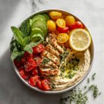 Presentation is everything, and this recipe is no exception! Serve your Lemon Herb Hummus Chicken Bowls Recipe in mason jars for a cute lunch-on-the-go or on colorful ceramic bowls that contrast beautifully with the vibrant veggies and creamy hummus. You can also drizzle a little extra virgin olive oil or a sprinkle of sumac over the top for an elegant touch that’s sure to wow your guests.