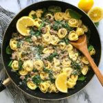 This one-pan tortellini and sausage skillet dinner is a quick, flavorful meal perfect for busy weeknights. Combining savory Italian sausage, fresh cheese tortellini, and vibrant baby spinach, all cooked together in a single skillet with olive oil, garlic, and zesty lemon, it offers a comforting yet fresh dish ready in just 20 minutes.