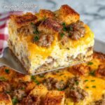 This Sausage & Crouton Breakfast Casserole is a hearty and comforting morning meal perfect for family gatherings or brunch. Combining savory cooked sausage, crunchy croutons, and melted cheddar cheese with a rich custard made from eggs, milk, and cream, this casserole offers a delicious blend of textures and flavors. Prepared ahead and baked until golden and set, it’s an effortless way to serve a filling breakfast that everyone will enjoy.