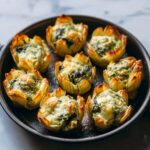 Serve your Spinach Artichoke Bites Recipe on a rustic wooden board surrounded by small bowls of dipping sauces to encourage mingling and sharing. For gatherings, arranging them in a circular pattern with garnish in the center creates an eye-catching centerpiece.
